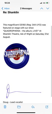The scooter is faithful to the original as used by 'Chad' on The Who’s album Quadrophenia and accompanying book. With the correct original RAF St. Christopher badge, all of the spotlights are Miller, Stadium, Lucas and Radyot as per the original. Many details, like the individual plectrums and accessories deserve study of the full set of photographs to appreciate. The scooter is in fine running condition as can be seen by the photographs and the video below. This actual machine was used by the Mod revival band ‘The Goldhawks’ on stage during the ‘Quadrophenia - The Album Live’ tour. With correct matching numbers, this is a very good GS160 in its own right. The reserve has been set realistically.