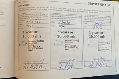 First registered on the 24th August 1998, this is a rare and desirable LWB Super V8. Finished in Red with a Cream leather interior and displaying only c.63,000 miles on the odometer, there are just four former keepers recorded on the V5C. Owned by the vendor for the last 3 years and only covering some 7,000 miles in that period, it appears the car was fully serviced and maintained, with main dealer service history until 55,066 miles in 2016 with Lancaster Jaguar Reading, it was at that point when the previous keeper became ill. Maintenance has included the fitment of a new battery, space-saver spare wheel and four matching 'good-tread' Pirelli 'P zeros' on the car. There's a new centre cap on order for the front nearside wheel and will be fitted before the sale. The car benefits from a very recent MOT (February 2026 expiration) with no advisories as per the last 3 since 2022. On the photography session, our consultant found the Super V8 was a pleasure to be driven in, very quiet on both the suspension and the engine and comfortable too. It is being offered with a comprehensive main dealer service record up to 2016 along with the book pack, 2 keys and a V5C.