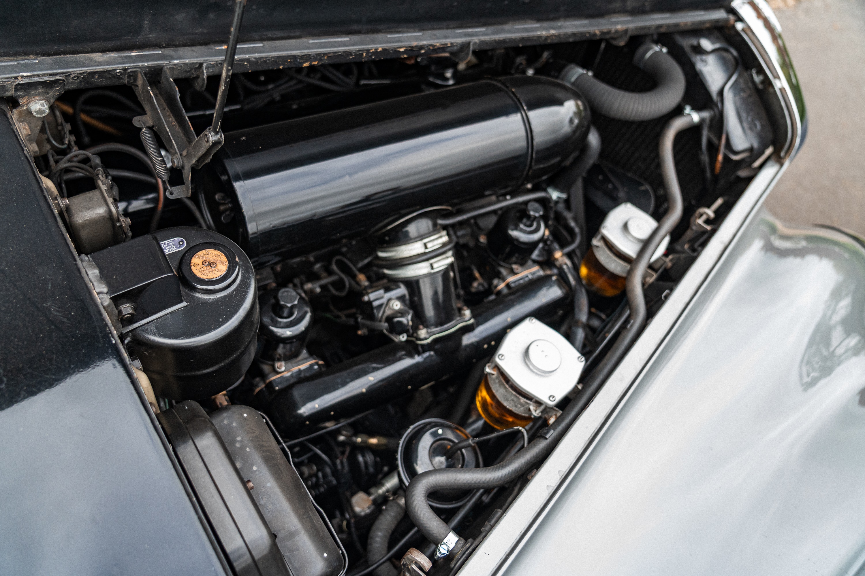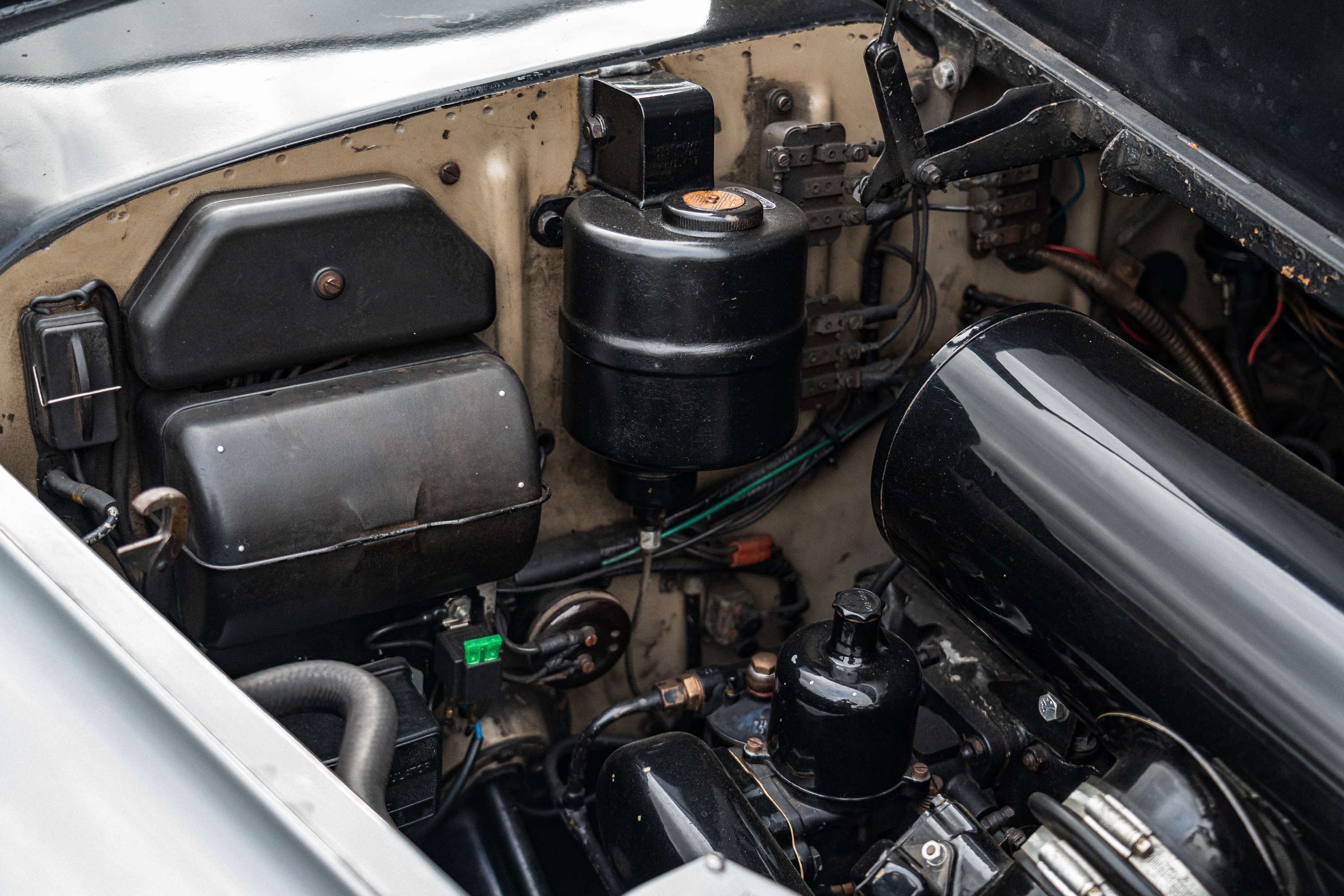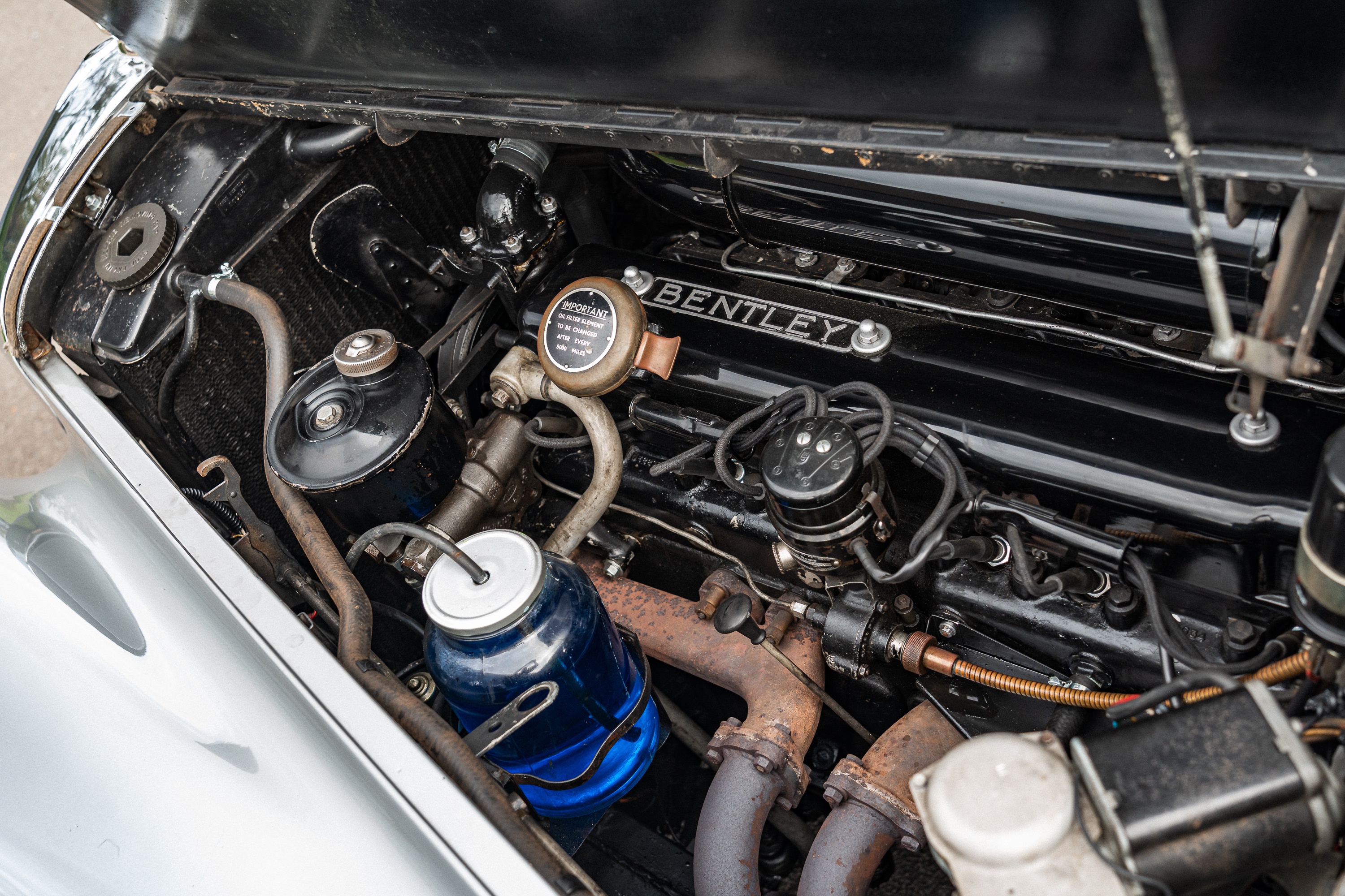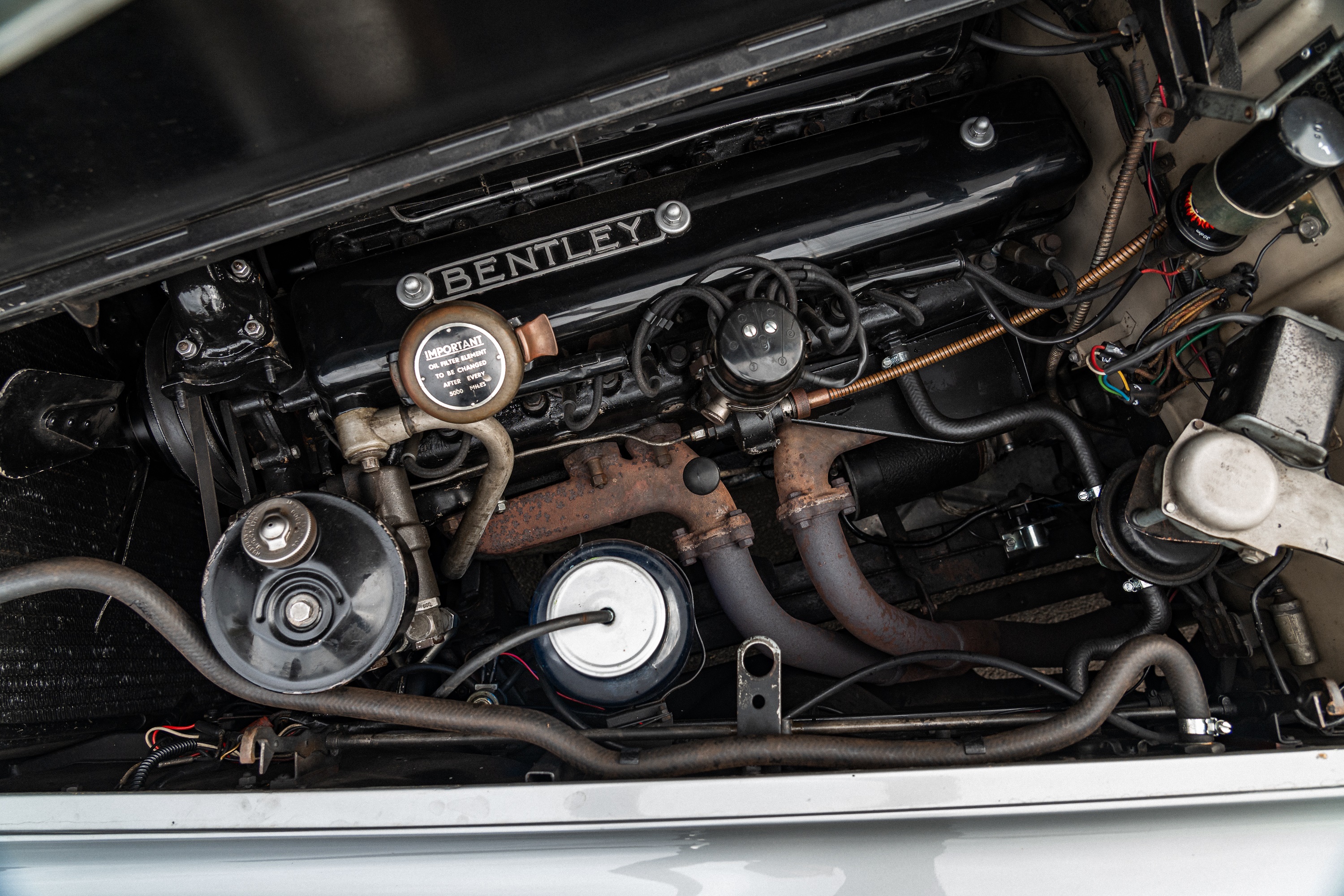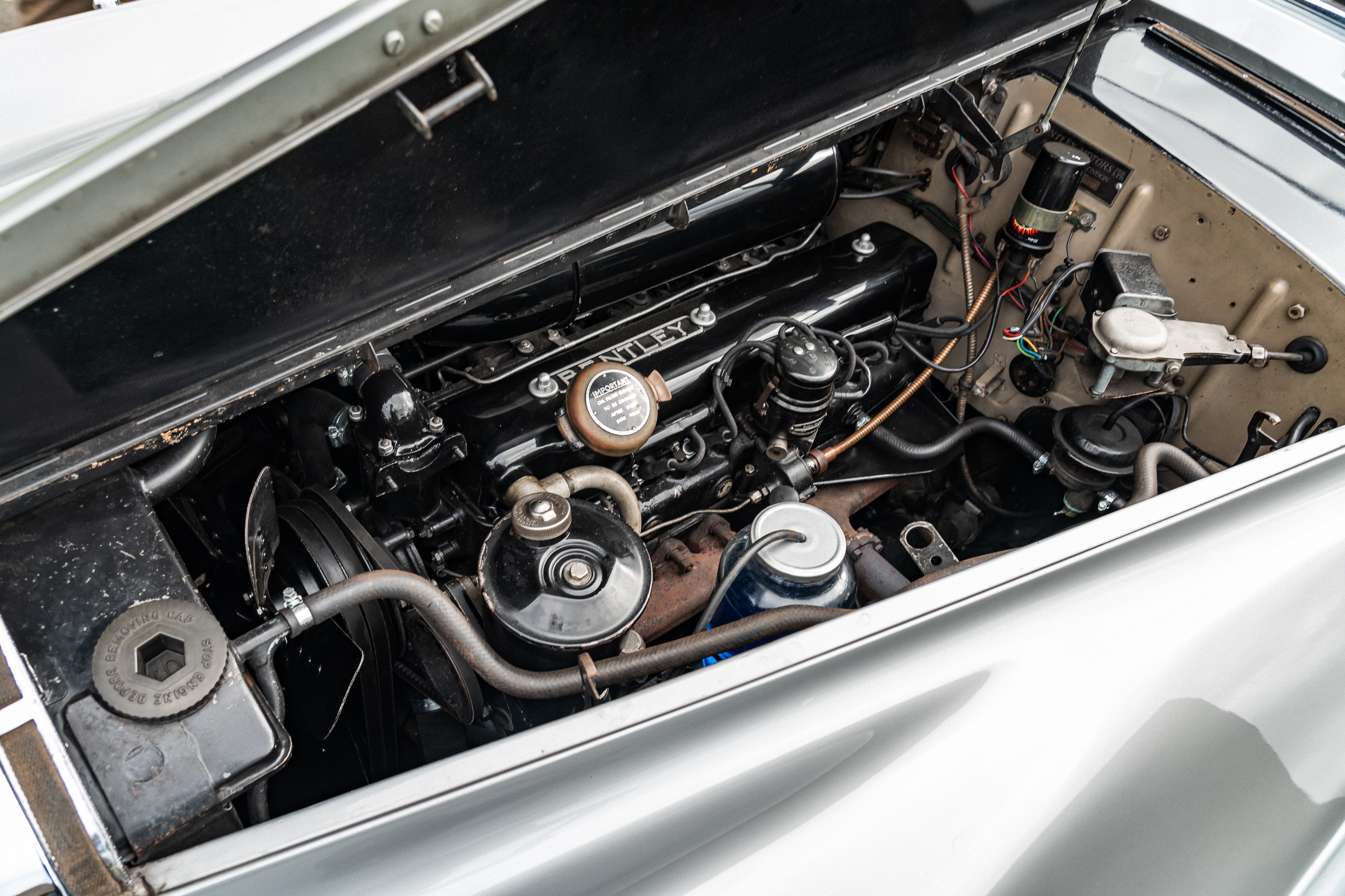It was our privilege to handle the sale of Mr. Riding’s collection in 2023, and it was from there that the Bentley was purchased by the present owner. Upon its return to the British mainland, the owner immediately and successfully applied for it to have its original registration number reinstated. He proceeded to spend over £15,000 with Ranmore Service & Engineering, which performed work including the replacement of both master cylinders, the overhaul of the brakes with new wheel cylinder seals and new rear brake shoes, and the overhaul of the servo unit. Both front suspension dampers were replaced with service exchange units. Subsequently, in 2024, the dynamo was overhauled by J. Morgan & Son for £490.