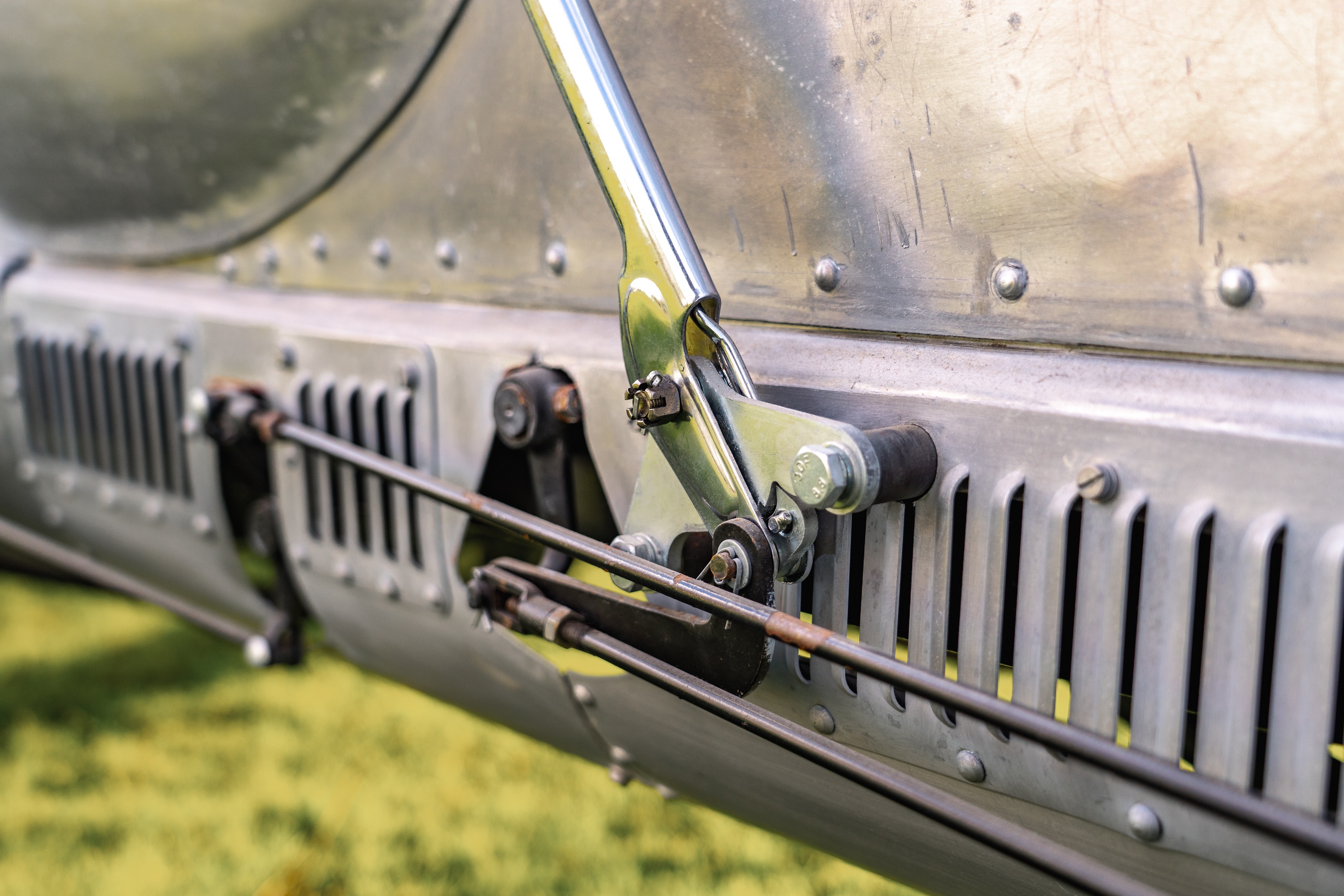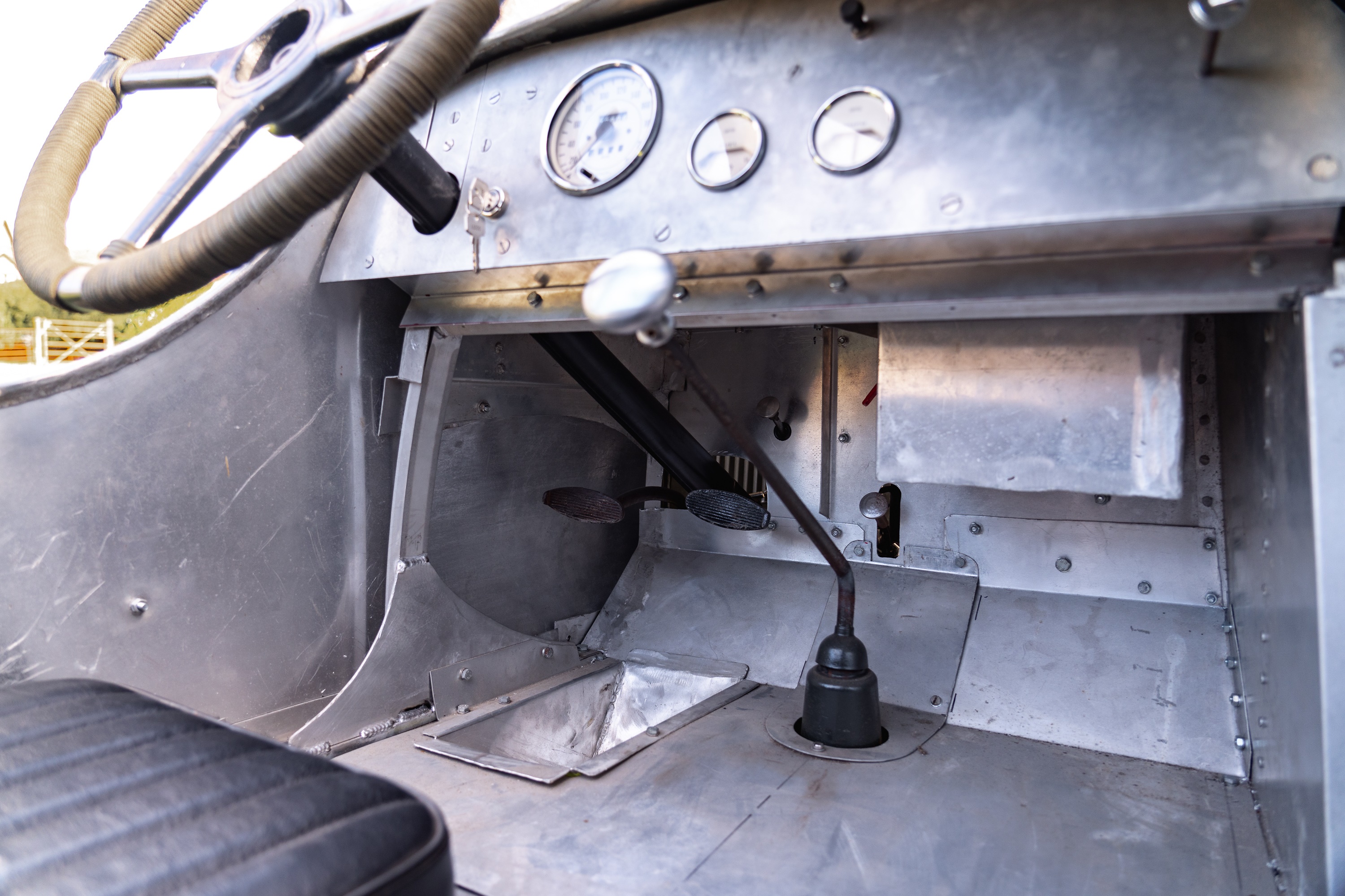 It is with these standards that this example was created and utilising a chassis from a 1930-built example acquired on one of his many trips to the USA, Mr Ballard set out to create an authentic looking aluminium bodied speedster that harked back to the prohibition era. Utilising a 3.3 Litre Model A engine that was subject to a complete mechanical overhaul in-house, the car was built up from the bare chassis and a one-off body was built for the car that was designed with a striking long tail and enclosed radiator cowl. During the process, the front and back axles were also subject to a complete overhaul, and new spoked wheels were fitted shod with Blockley tyres.